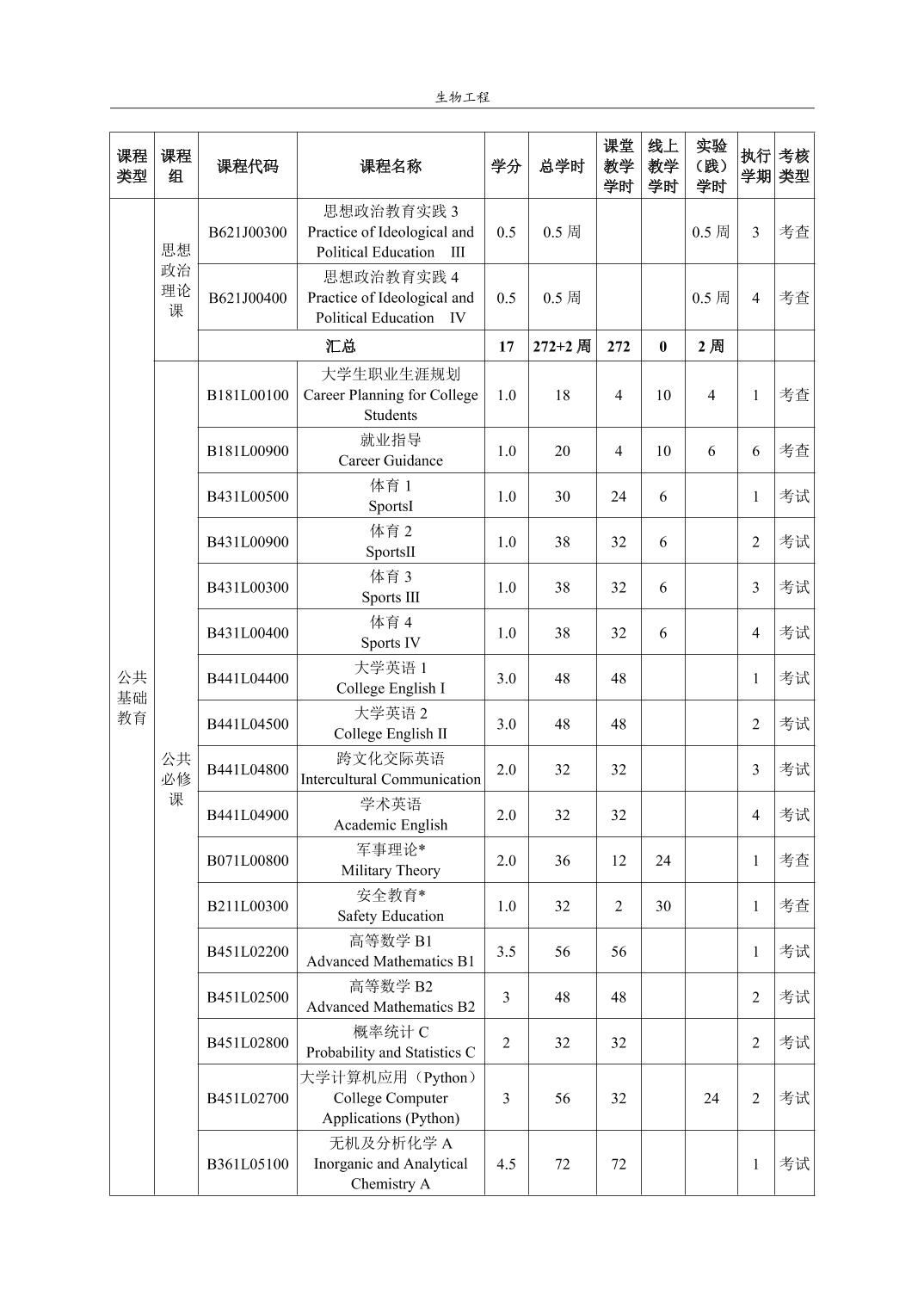 生物工程培养方案(2022版)