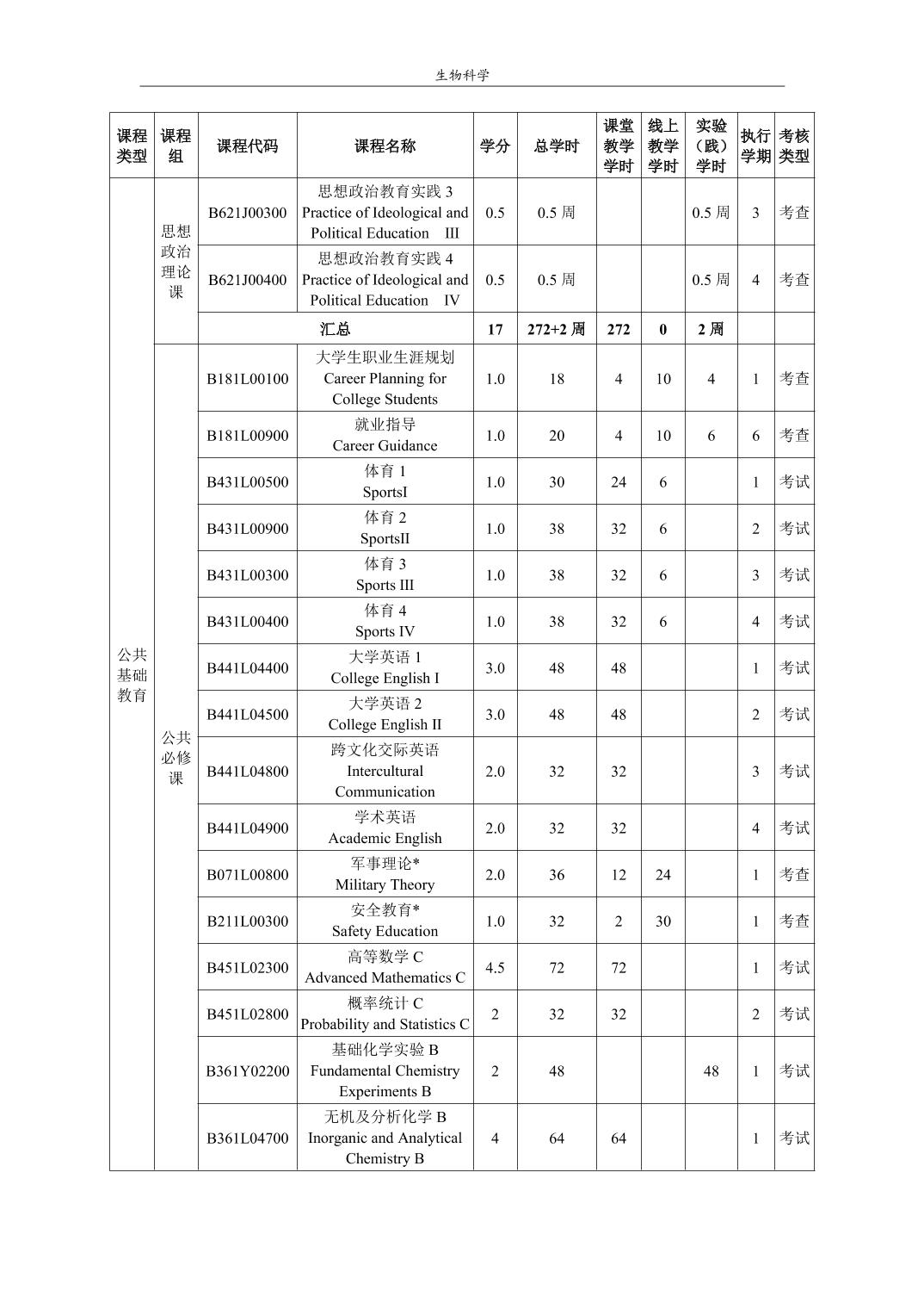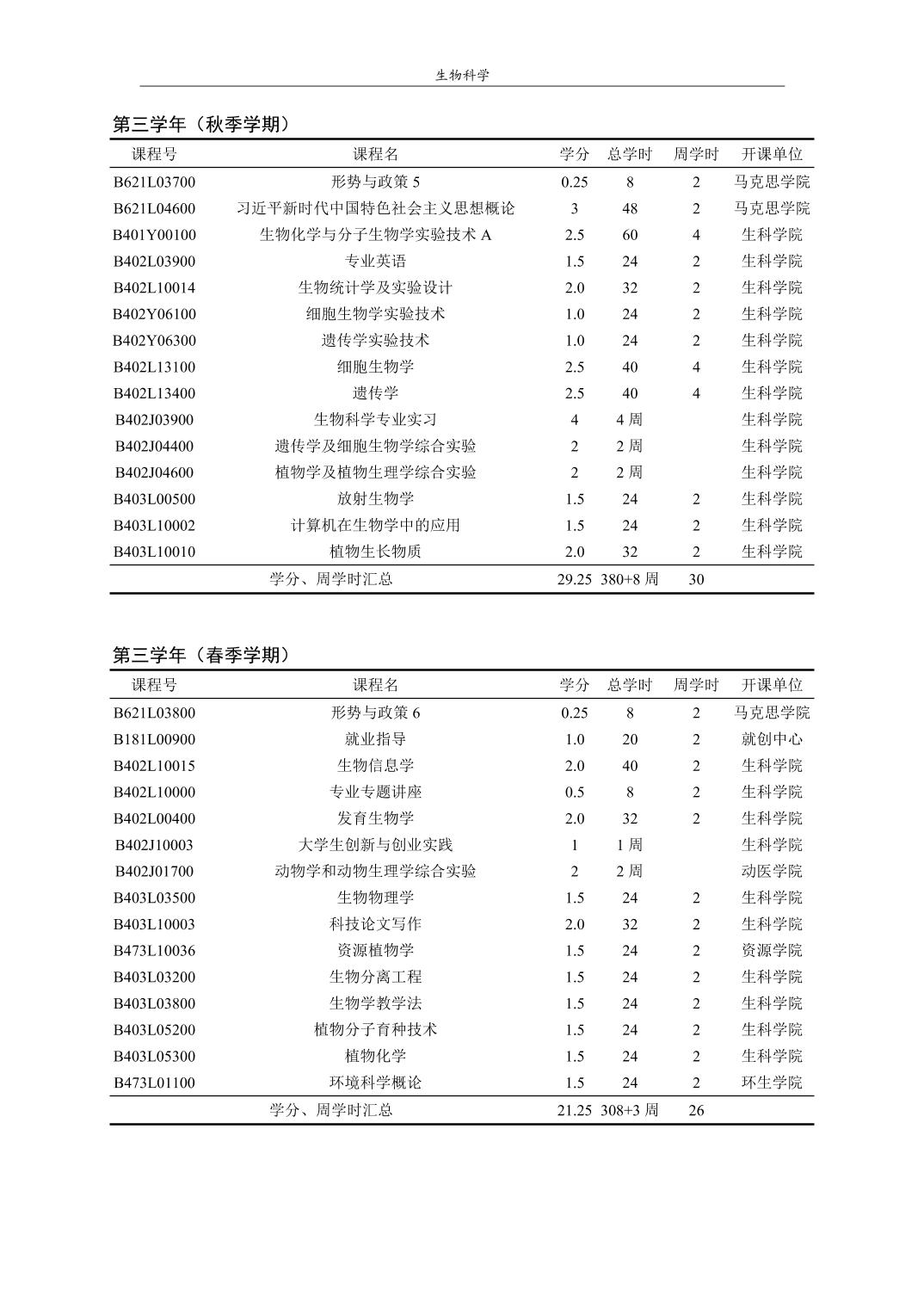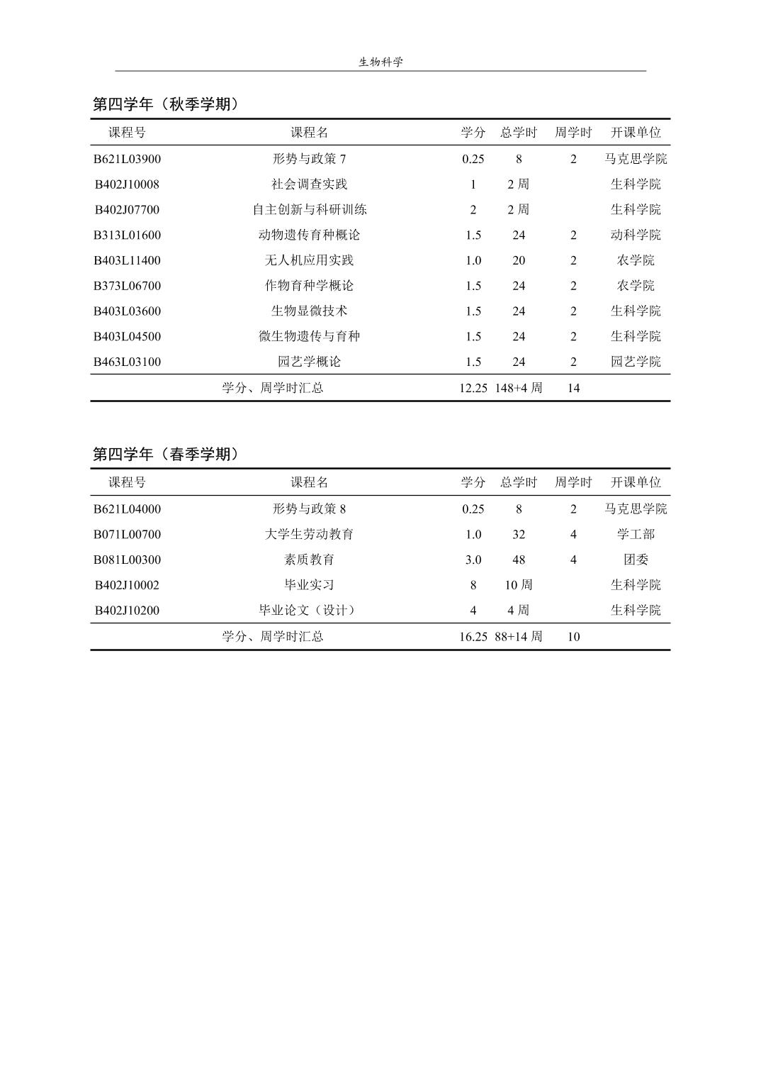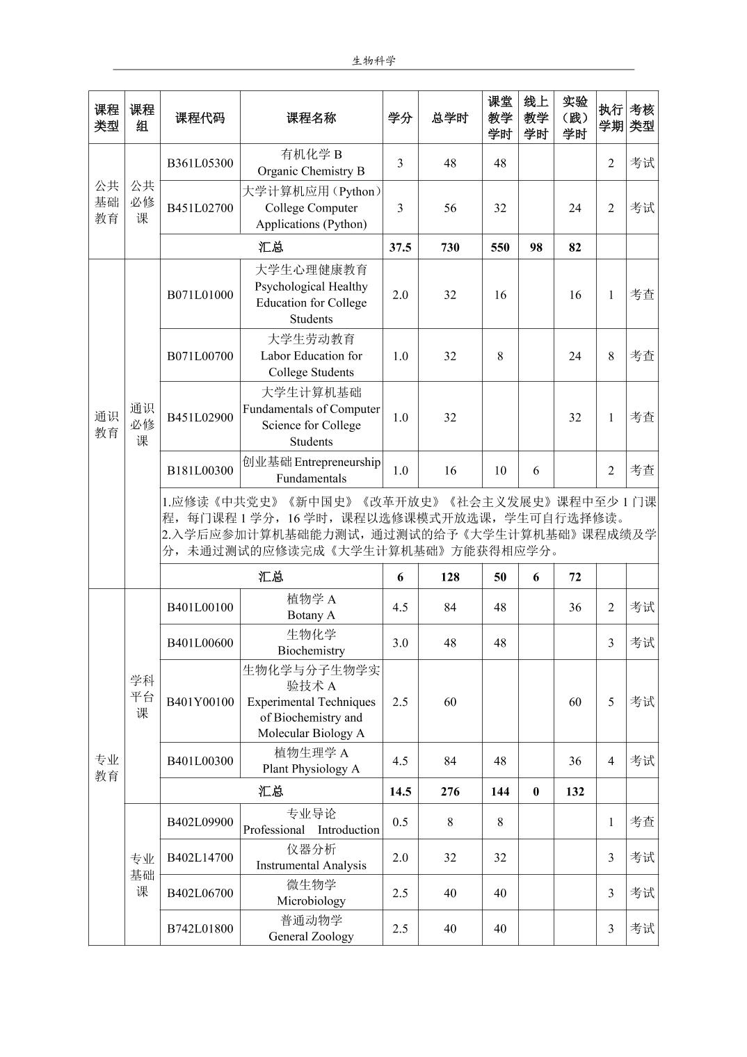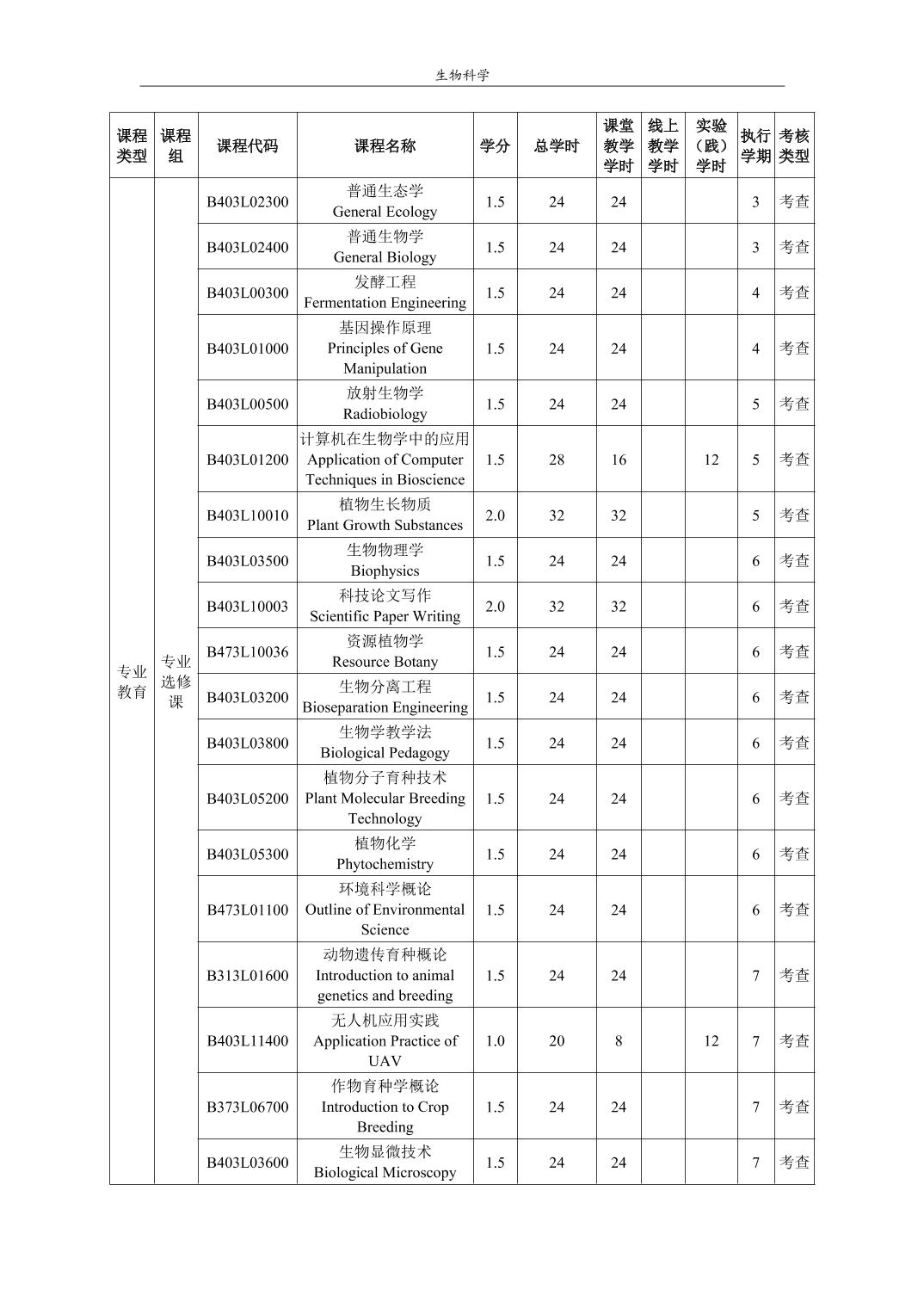 生物科学培养方案(2022版)