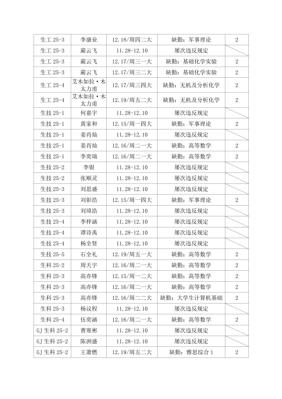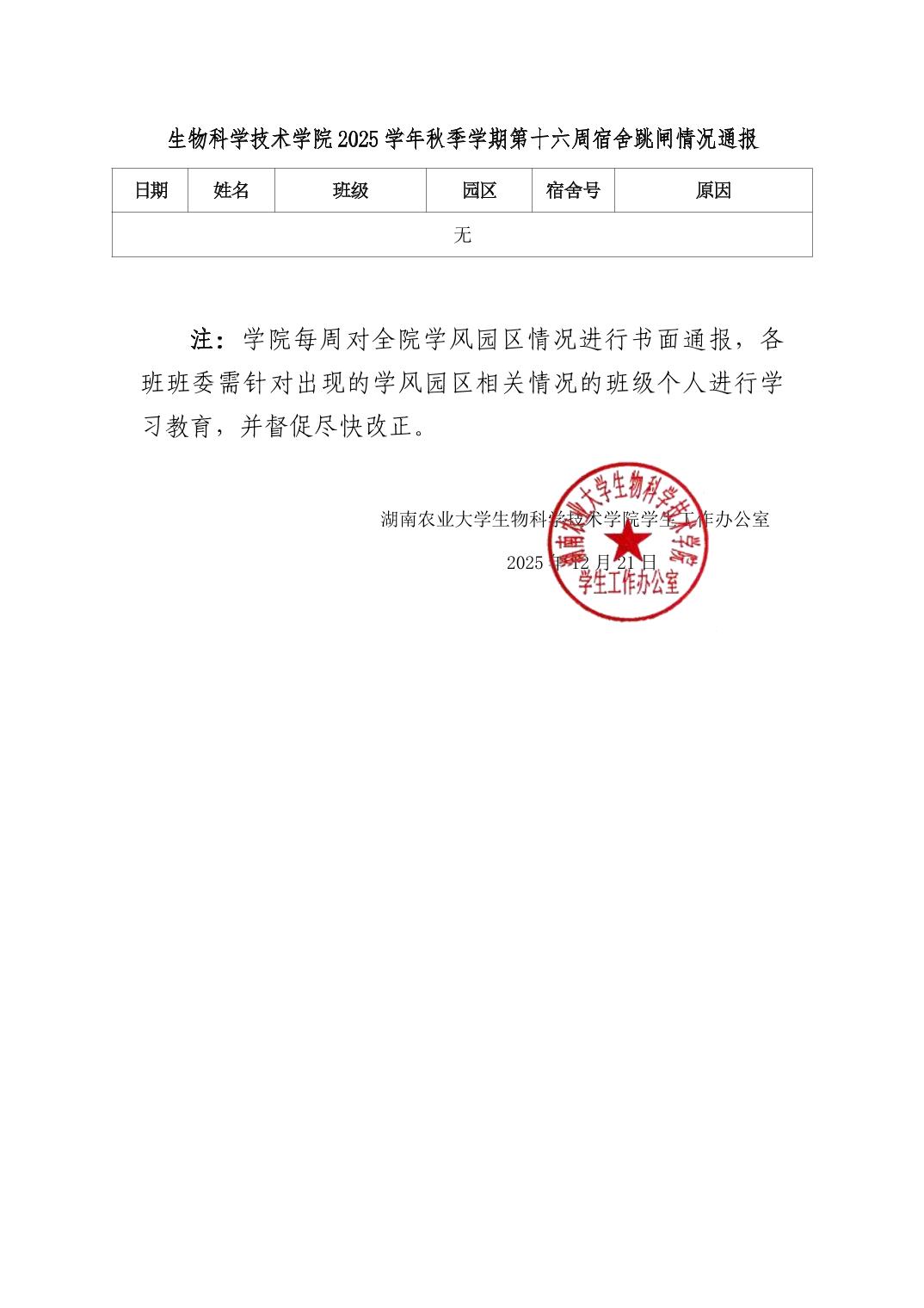 2025年秋季学期球盟会第16周日管通报