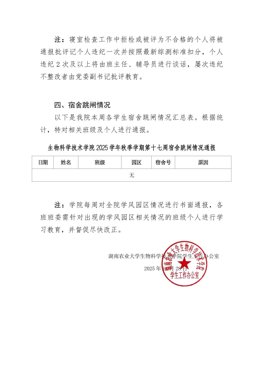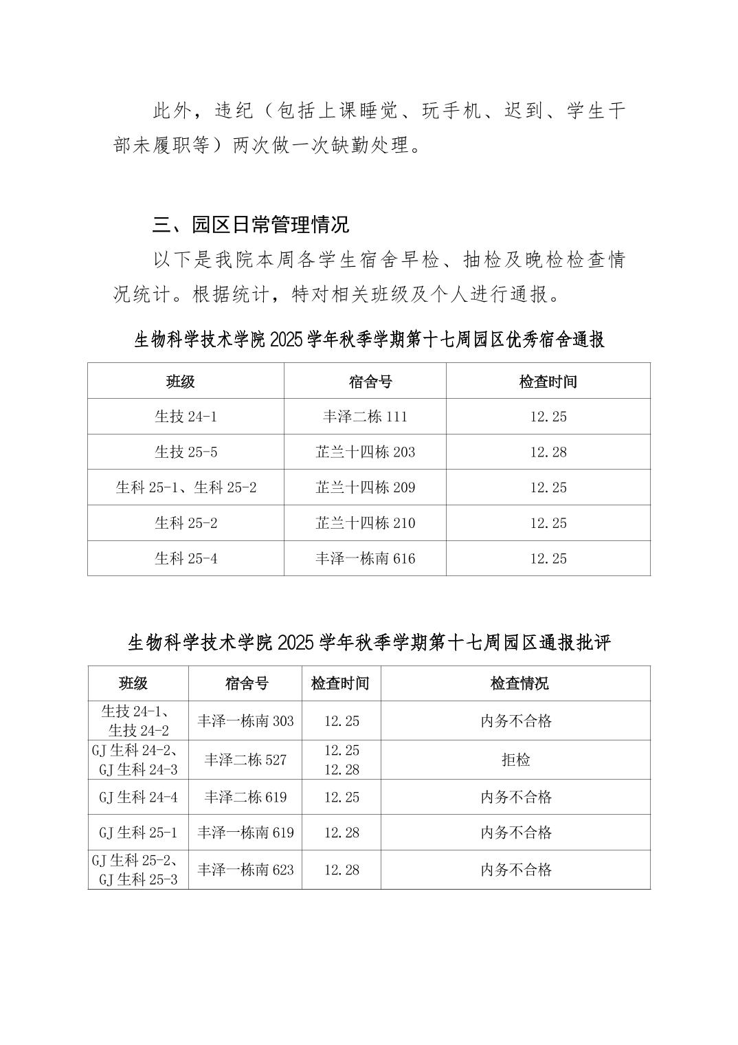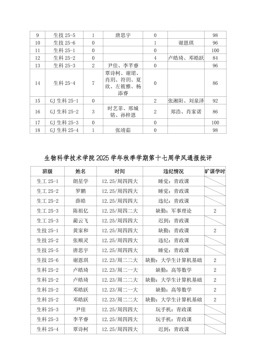 2025年秋季学期球盟会第17周日管通报
