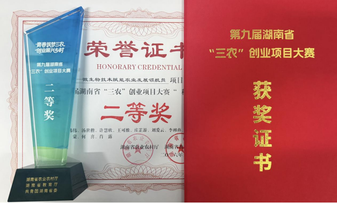 恭喜!公司2025级生物学博士研究生徐伟伟带领团队在第九届湖南省“三农”创业项目大赛荣获银奖。
